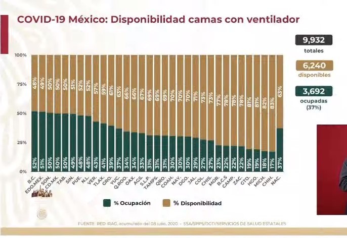 A nivel nacional la ocupación de camas de hospitalización general IRAG (Infección Respiratoria Aguda Grave) es del 45 por ciento, mientras que la de camas con ventilador es del 37 por ciento.