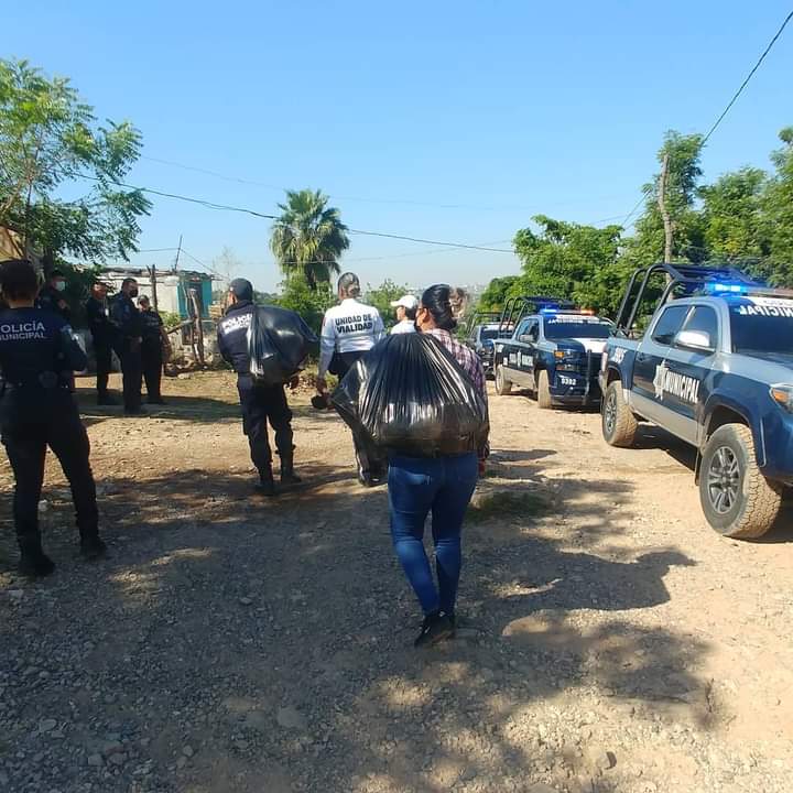 CULIACÁN, Sin.- Personal de la Secretaría de Seguridad Pública y Tránsito Municipal, en coordinación con integrantes del Tribunal de Barandilla, acudieron a la colonia 5 de Febrero, en donde hicieron entrega de despensas, ropa, y diversos enseres a familias del sector.