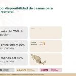 A nivel nacional, 72% de camas de hospitalización general están disponibles y 28% ocupadas. En camas con ventiladores, 69% están disponibles y 31% ocupadas.