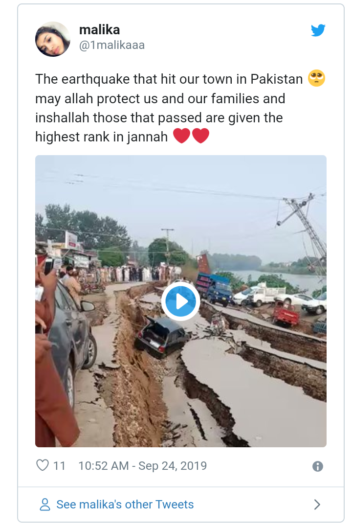 Los medios de comunicación de Pakistán transmitieron imágenes impresionantes de una carretera surcada de grietas en las que habían caído varios automóviles.