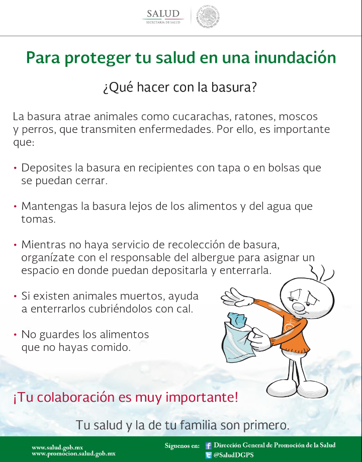 No tirar basura en las calles, alcantarillas y coladeras, para evitar la obstrucción del drenaje que derive en inundaciones que pueden afectar las viviendas y la salud de la población.