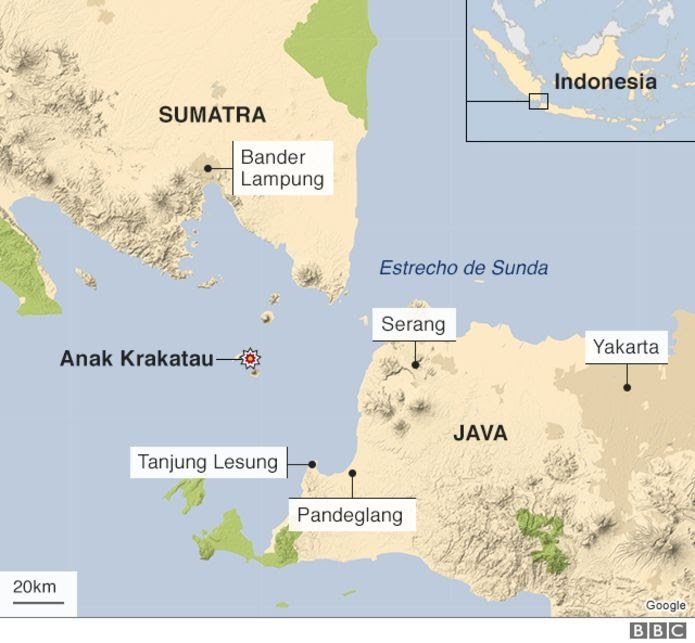 Las autoridades creen que el tsunami fue provocado por una erupción en el volcán Anak Krakatoa , pues no hubo ningún terremoto que lo desencadenara.