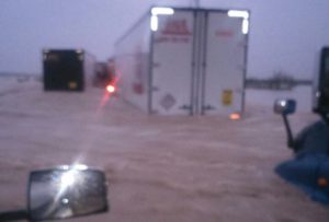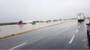 Conductores de tráileres compartieron fotografías en redes sociales además de que dieron cuenta que el agua les llegó hasta la altura de las cabina de las unidades pesadas.