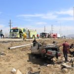 Al parecer el conductor perdió el control, salió de la carretera y terminó contra contra un poste alumbrado público lo que hizo que volcara.