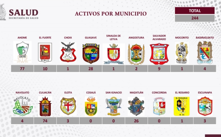 Con casos contabilizados del IMSS, ISSSTE y hospitales de la Secretaría de Salud estatal, hay 244 pacientes activos con 94 por ciento en disponibilidad de camas.