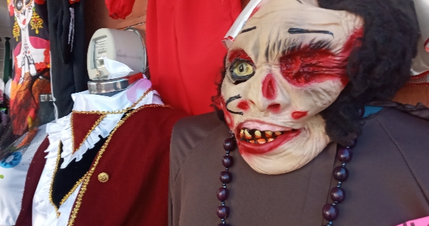 Desde los 250 a 900 el precio de los disfraces en un establecimiento de las calles del Centro. Varía, dependiendo del tamaño y los objetos que la acompañen.