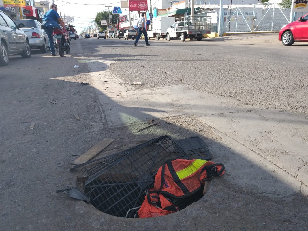 NAVOLATO, Sin.- Un metro de profundidad abarca una alcantarilla abierta sobre la avenida Jesús Almada, la principal arteria vial de la ciudad de Navolato.
