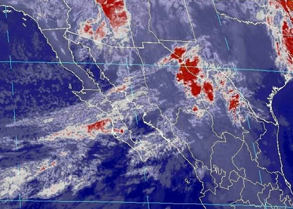 Se prevén lluvias fuertes con descargas eléctricas en Sonora y Chihuahua; intervalos de chubascos en Baja California Sur, Coahuila, Durango, Nayarit, Michoacán, Oaxaca y Chiapas; lluvias aisladas en Baja California, Sinaloa, Jalisco, Guerrero, San Luis Potosí, Yucatán y Quintana Roo; rachas de viento mayores a 60 km/h en Baja California, Baja California Sur, el Mar de Cortés, Coahuila, Sinaloa y San Luis Potosí, así como oleaje de 2 a 4 metros (m) en la costa occidental de la Península de Baja California.