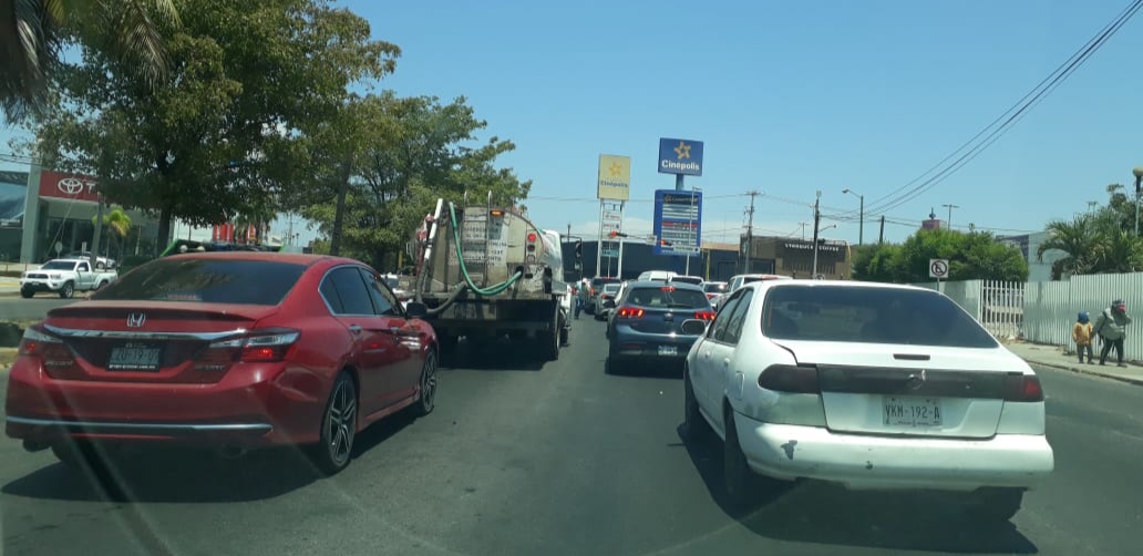A las 13:00 horas el bulevar Pedro Infante, calzada Aeropuerto y bulevar Emiliano Zapata lucían congestionados por la fila de vehículos que se aglomeran en los semáforos como si fuera un día normal.