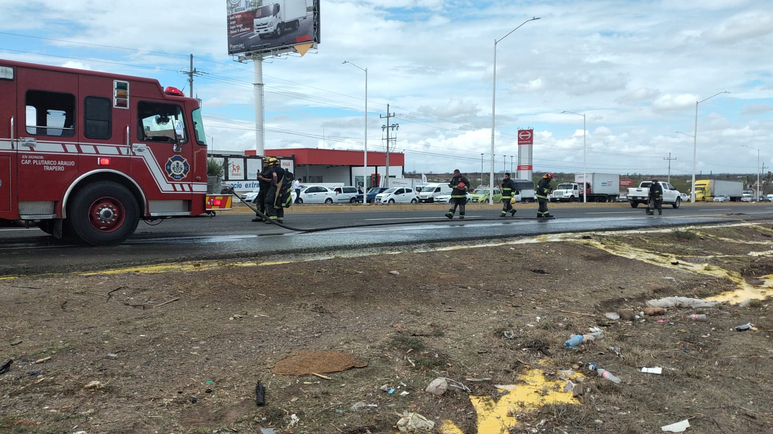 CULIACÁN, Sin.- Un automóvil atropelló a tres empleados de una constructora que realizaba trabajos de mantenimiento en el libramiento Benito Juárez “La Costerita”.