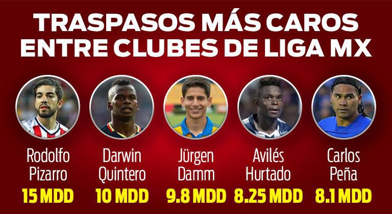 Cabe recordar que antes de que Chivas se hiciera de los servicios de Pizarro, Darwin Quintero había sido el jugador que implantó la marca entre clubes de la Liga MX, al llegar del Santos Laguna al América por una cantidad de 10 millones de dólares.
