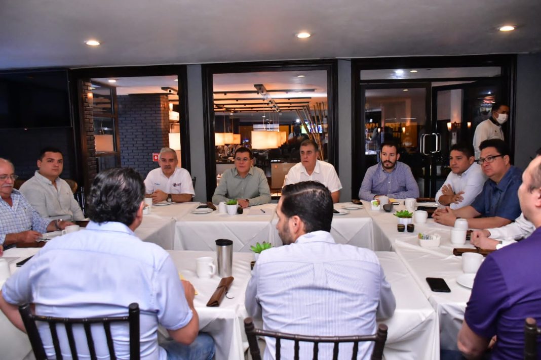 MAZATLÁN, Sin.- El presidente municipal de Mazatlán, Édgar González Zataráin, asistió a una reunión de trabajo con líderes de diferentes cámaras, entre ellos inmobiliarios, Coparmex, CMIC, Canaco, Codesin, transporte de carga y asociaciones de hoteles.