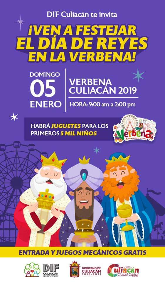 CULIACÁN, Sin.- Para celebrar el Día de Reyes este domingo 05 de enero en la Verbena Culiacán la entrada es completamente gratuita al igual que los juegos mecánicos.