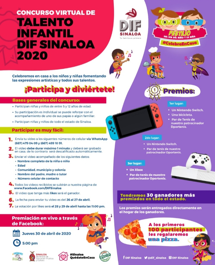 Destacar que todos los videos recibidos se subirán a nuestra página de www.facebook.com/DIFSinaloa