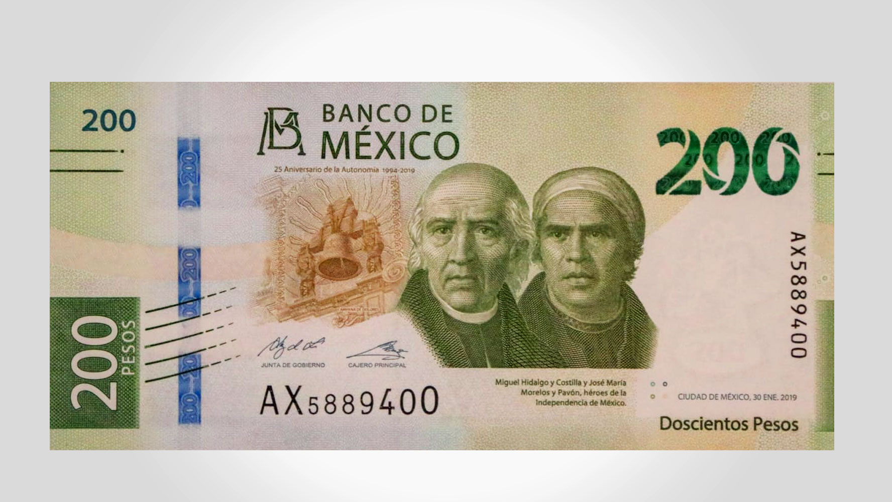 “El nuevo billete de 200 pesos es de un color predominantemente verde, está impreso en sustrato de algodón y contiene en su anverso la efigie de los dos grandes protagonistas del proceso de Independencia de México”, detalló el gobernador del Banco Central, Alejandro Díaz de León.