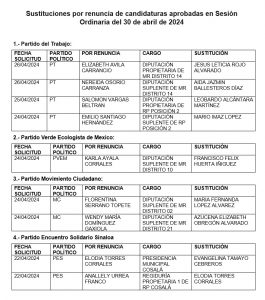 CULIACÁN, Sin.- En sesión ordinaria virtual, el Consejo General del Instituto Electoral del Estado de Sinaloa (IEES) aprobó la sustitución por renuncia de candidaturas presentadas por los partidos políticos del Trabajo (PT), Verde Ecologista de México (PVEM), Movimiento Ciudadano (MC) y Encuentro Solidario Sinaloa (PES).