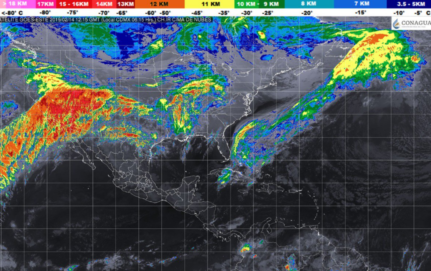 En el reporte más reciente del organismo dependiente de la Comisión Nacional del Agua (Conagua), también pronosticó que la aproximación de un nuevo frente frío en combinación con el fuerte ingreso de humedad ocasionado por la corriente en chorro originará potencial de tormentas muy fuertes a puntuales intensas en Baja California y Sonora; posible caída de nieve o aguanieve en zonas montañosas de Baja California, Sonora y Chihuahua.