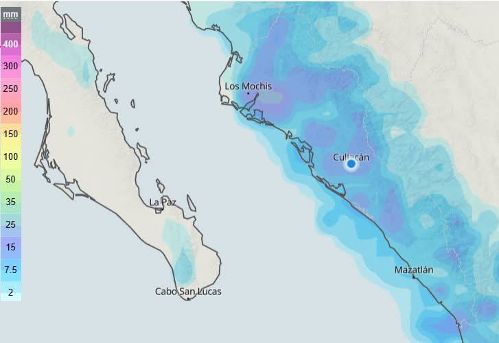 Para Culiacán se esperan inicien las lluvias entre 16:00 y 17:00 horas, San Ignacio y La Cruz de Elota igual tormentas eléctricas de a la misma hora, Mazatlán también con tormentas eléctricas aproximadamente a partir de las 18:00 horas, Escuinapa, El Rosario e Isla de Bosque, con potencial para las 18:00 y 19:00 horas. Eldorado lluvias posiblemente entre 20:00 y 21:00 horas , al igual que la línea de costa de Navolato.