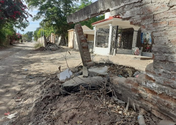 NAVOLATO, Sin.- Es un peligro y por un costado circulan hasta niños que circulan de manera obligada por el sitio. El presidente municipal de Navolato, Eliazar Gutiérrez Angulo, prometió derribar la barda del panteón de San Pedro.