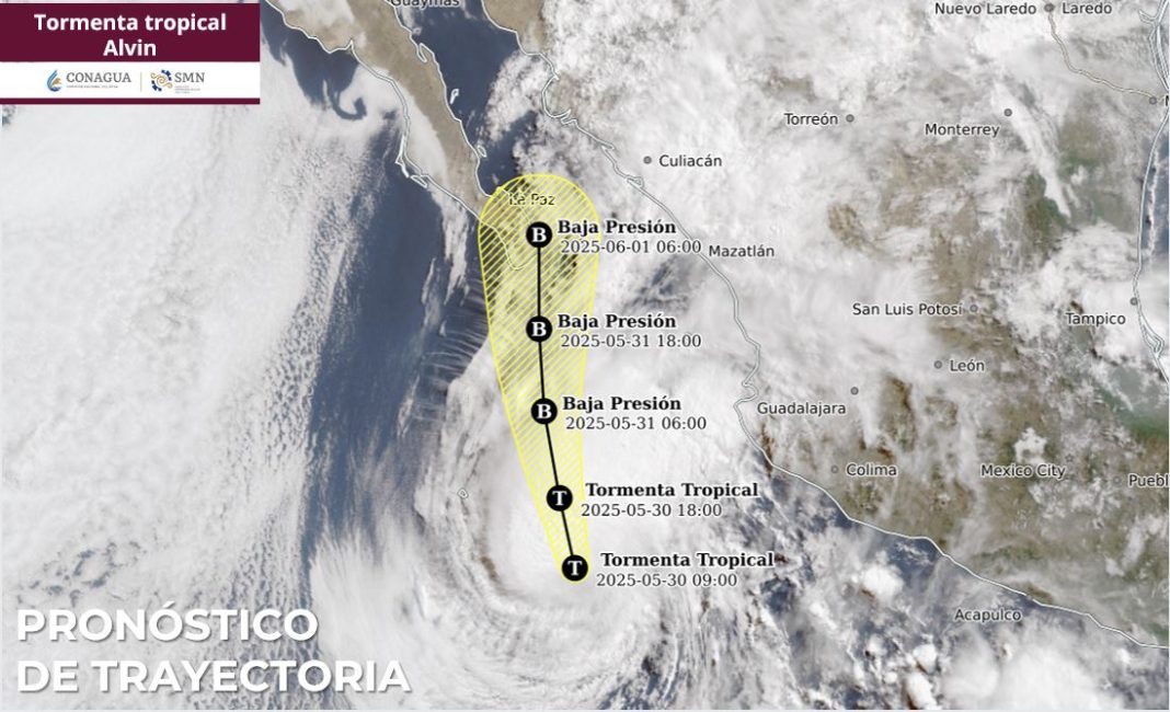 CULIACÁN, Sin.- De acuerdo al Centro Nacional de Huracanes de los Estados Unidos indica un impacto de la depresión tropical Alvin hacia Los Cabos, Baja California Sur y posteriormente entre a la zona del Golfo, con dirección a las costas de Guasave hasta Ahome como remanente.