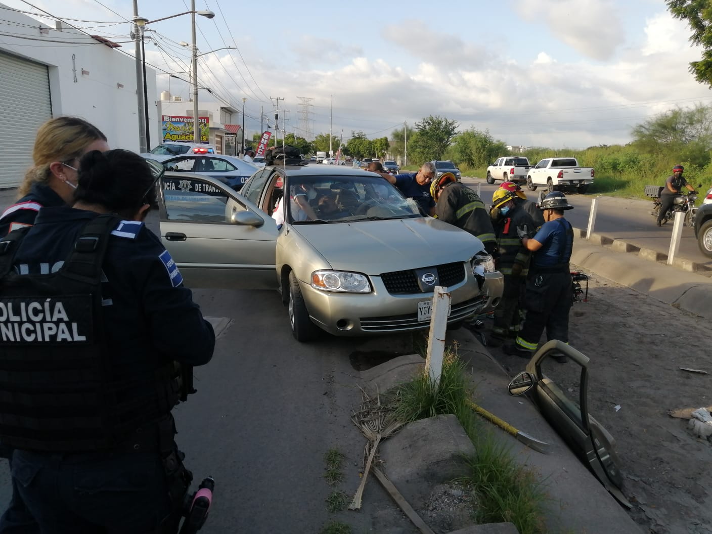 CULIACÁN, Sin.- Un hombre quedó prensado en un automóvil al chocar contra los muros metálicos de contención del canal pluvial ubicado en la zona norte del bulevar Las Torres de Culiacán.