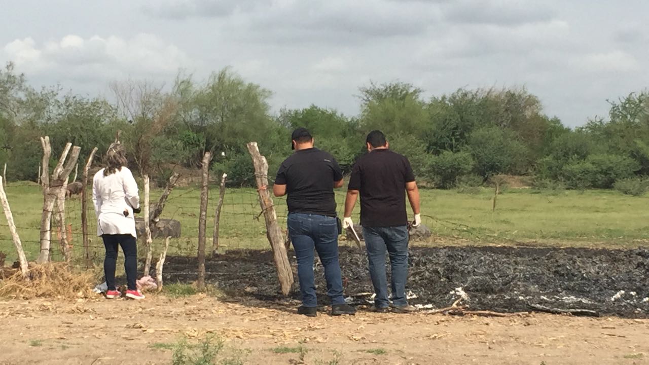 El cuerpo localizado en El Coronel a unos metros de la escuela primaria estaba aún expidiendo humo y se presume es de Francisco de 44 años de edad, quien desapareció la noche de ayer.