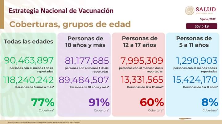 Al 5 de julio, la Estrategia Nacional de Vacunación registra una cobertura de: