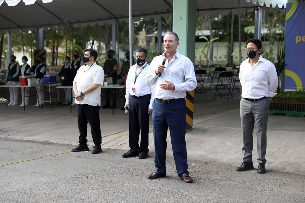 El enlace con la conferencia de prensa matutina, se generó desde las instalaciones de la Novena Zona Militar, y acompañaron al gobernador, además del delegado del IMSS, el secretario de Educación Pública y Cultura, Juan Alfonso Mejía López, y el comandante de misma, el general Maximiliano Cruz Ramos.