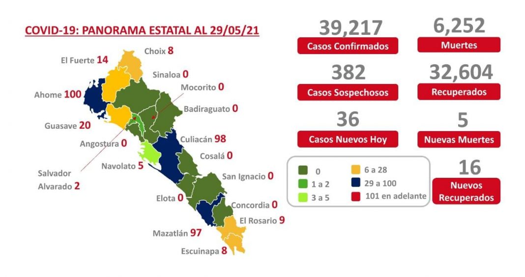 CULIACÁN, Sin.- En el día 457 desde el primer caso detectado por coronavirus Sinaloa rebasó los 6,250 muertes con 5 nuevos fallecimientos reportados en las últimas 24 horas.