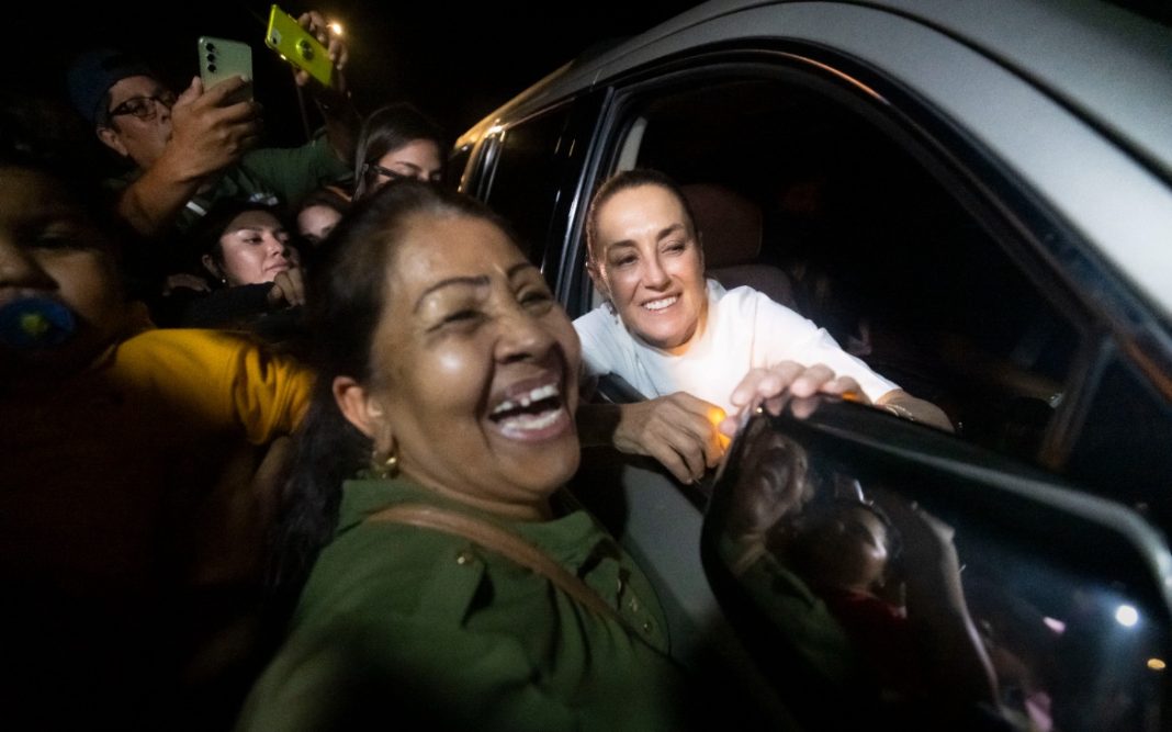 Fue poco después de las ocho de la noche cuando los cientos de mazatlecos pudieron saludar de mano a la presidenta Sheinbaum, aprovechando que la camioneta detuvo su marcha y la mandataria bajó la ventanilla para estrechar las manos de todas las personas que se arremolinaron alrededor del vehículo.
