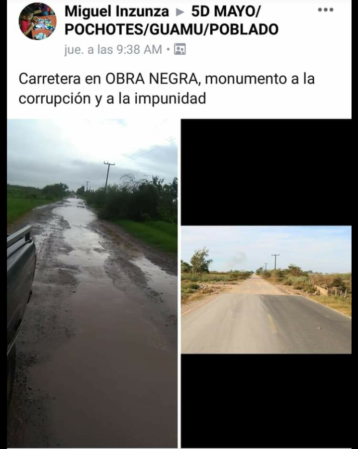NAVOLATO, Sin.- Apenas si el presidente municipal Eliazar Gutiérrez Angulo coronó ayer a las reinas infantil y juvenil del 37 aniversario de la municipalización de Navolato y hoy le llueven reclamos en la misma cuenta oficial de Facebook del Ayuntamiento solicitando Cañada de Guamuchilito la carretera que pudo haber logrado una evacuación rápida y segura en medio de la lluvia provocadas por la depresión tropical Ivo y ante la amenaza del desborde del dren Cedritos.