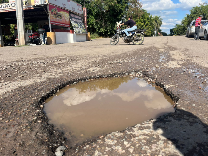 En el tramo que conecta de la carretera Culiacán-Navolato a la autopista Benito Juárez por el camino vecinal al Pisal hay una decena de hoyos y pésimo estado en el asfalto