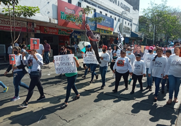 Con pancartas, lonas y hasta efigies de los jóvenes no localizados, un contingente de más de 200 madres y familiares de los desaparecidos se abrieron camino por la calle Ángel Flores para cruzar el Centro de la ciudad.