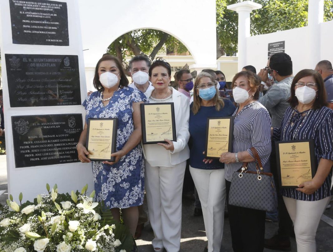 MAZATLÁN, Sin.- El gobierno municipal, a través de la Comisión de Educación del Cabildo, hizo un homenaje a cuatro maestros con hasta 70 años de labor dentro del Magisterio e inscribió sus nombres en el Monumento al Maestro, ubicado en la avenida Miguel Alemán y Rigoberto Lewis.