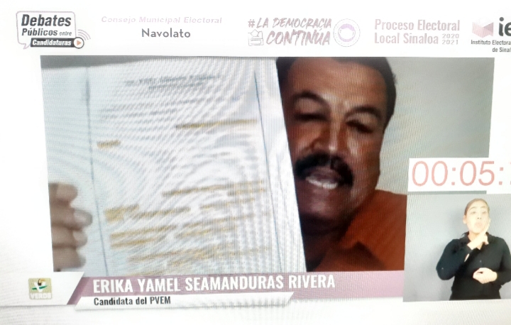 La candidata de Morena, Margot Urrea, se mantuvo sin ataques, ni respuestas a las declaraciones principalmente vertidas por el candidato del PRI entorno al mal manejo de la pandemia de su partido y el haberle quitado apoyos el gobierno federal a los niños con cáncer, la desaparición de estancias infantiles, además del retiro de apoyos a pescadores y agricultores.