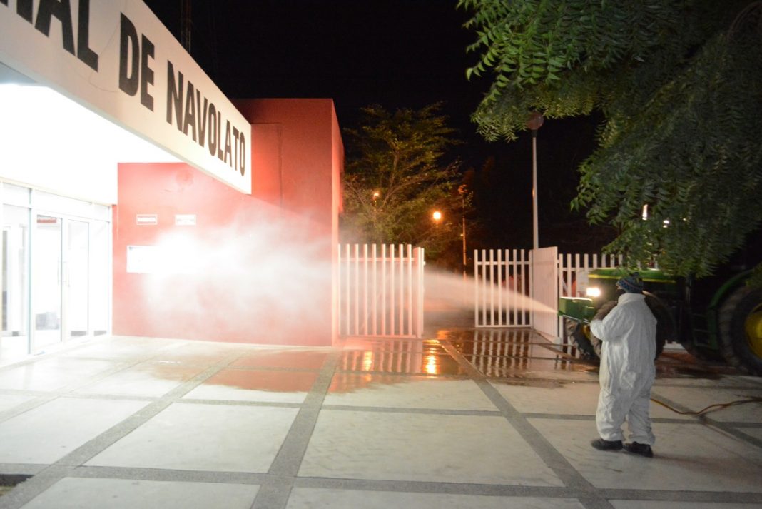 NAVOLATO, Sin.- Debido al incremento de contagios de COVID-19 en el municipio de Navolato, el alcalde Eliazar Gutiérrez Angulo, dio instrucciones a la coordinación de Protección Civil para intensificar los trabajos de sanitización en las oficinas públicas y lugares de mayor afluencia.