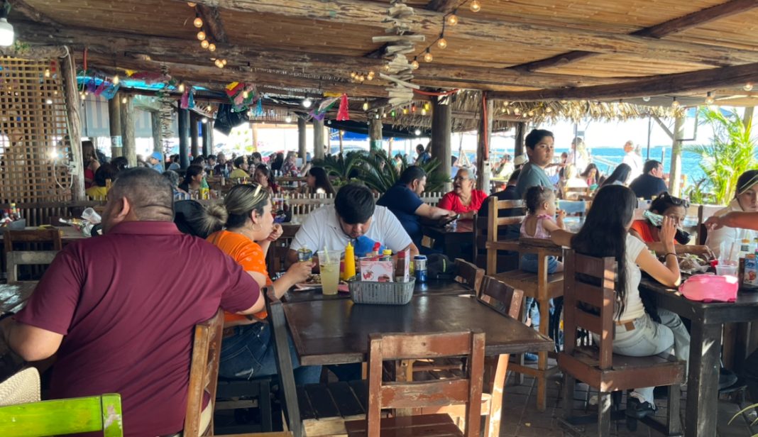 Restaurantes, puestos ambulantes, malecón y largas filas de vehículos para entrar al puerto son la imagen del día