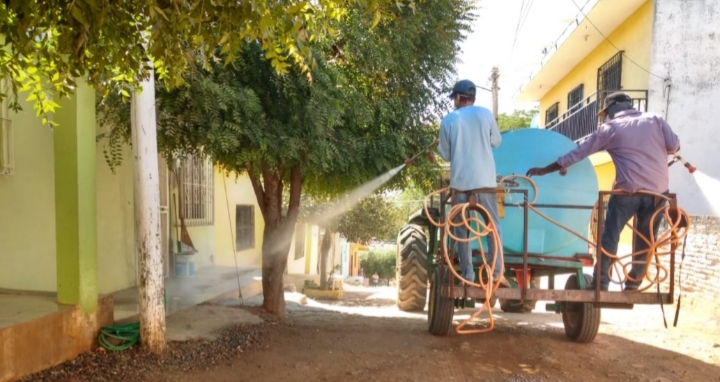 CULIACÁN, Sin.- Jesús Valdés Palazuelos entregó en apoyo a las jornadas de sanitización por la pandemia Covid-19 litros de cloro, kits de limpieza y apoyo alimenticio en hortalizas paras las familias de esta región.