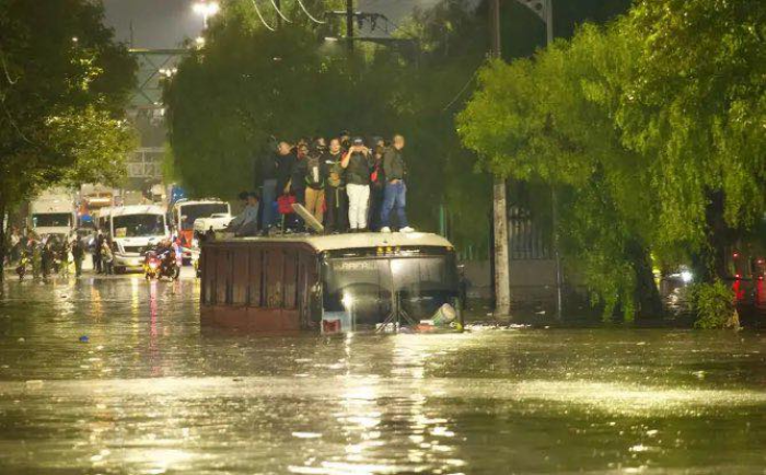 En algunas zonas de severos encharcamientos se reportaban personas atrapadas en el transporte público