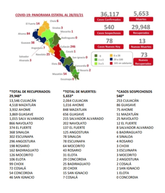 CULIACÁN, Sin.- Sinaloa reportó 13 nuevos fallecimientos reportados en las últimas 24 horas acumulando 5,653 decesos.