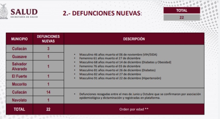 CULIACÁN, Sin.- Este miércoles la Secretaría de Salud reportó un alza desproporcionada de 22 muertes por COVID-19 en comparación con la cifra de ayer y 100 casos nuevos.