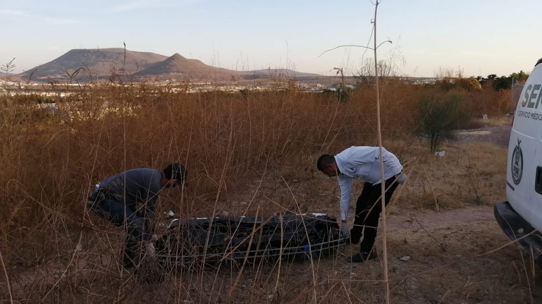 Estaban a unos 2.5 metros aproximadamente un cadáver del otro a un costado de un camino peatonal que comunica del libramiento La Primavera al fraccionamiento Real de Minas.
