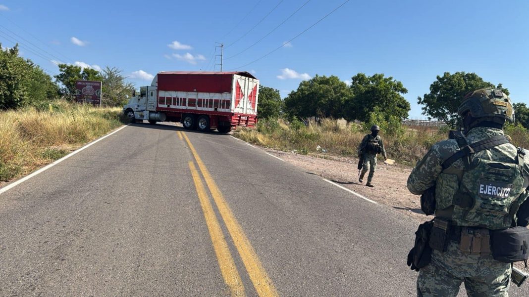 En el lugar se encuentra un camión tipo tortón bloqueando la circulación, en el lugar se encuentra personal de la Policía de Elota, Sedena y Guardia Nacional para liberar las vías de comunicación.