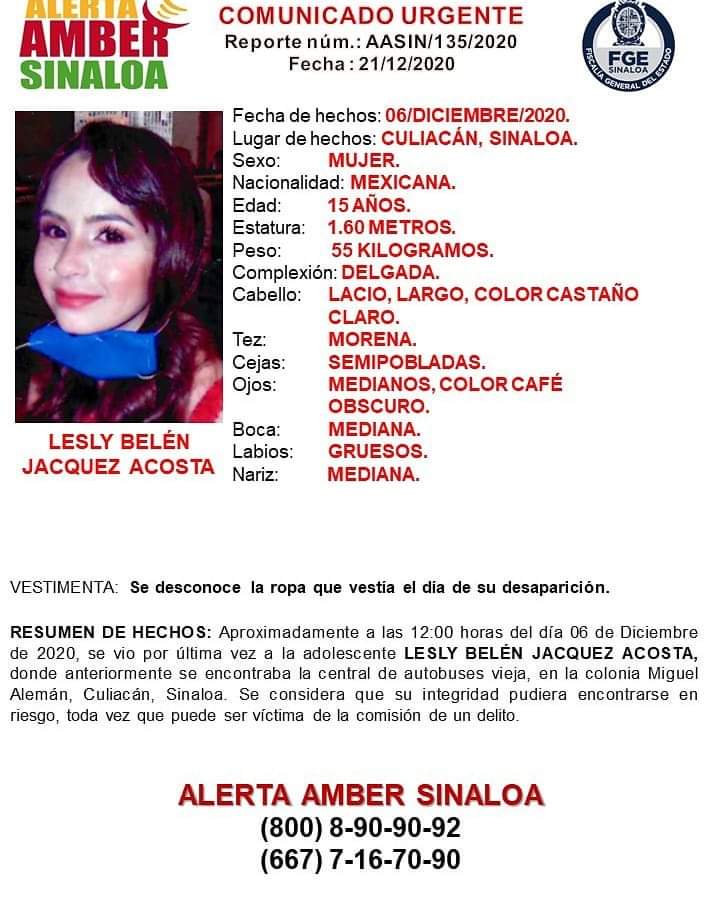 CULIACÁN, Sin.- La Fiscalía de Sinaloa solicitó la colaboración ciudadana para localizar a Diana Vanessa y a Lesly Belén.