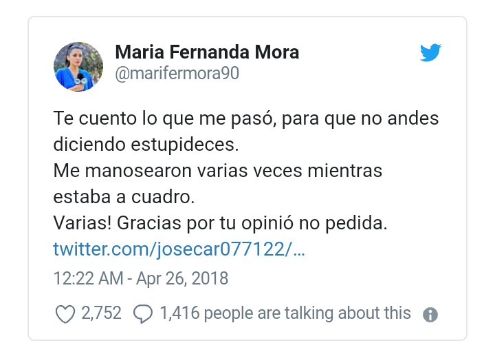 Tras el acontecimiento, la periodista denunció en su cuenta de Twitter haber sido atacada en más de una ocasión por los aficionados que celebraban el título de Chivas ante las cámaras de televisión.