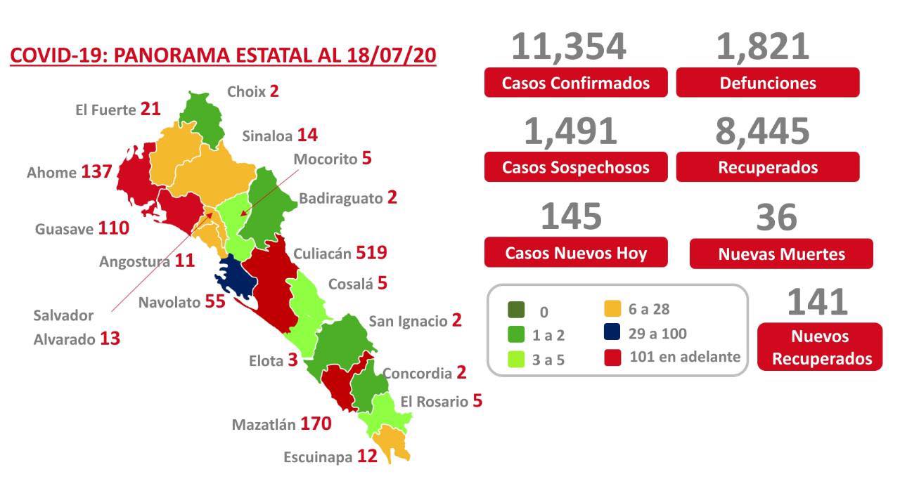 CULIACÁN, Sin.- Sinaloa registró hoy un repunte ligero en muertes por coronavirus, 36 nuevos decesos (Ahome 10, Guasave 8, Culiacán 6, Mazatlán 6, El Fuerte 2, Navolato 2, Salvador Alvarado 2).