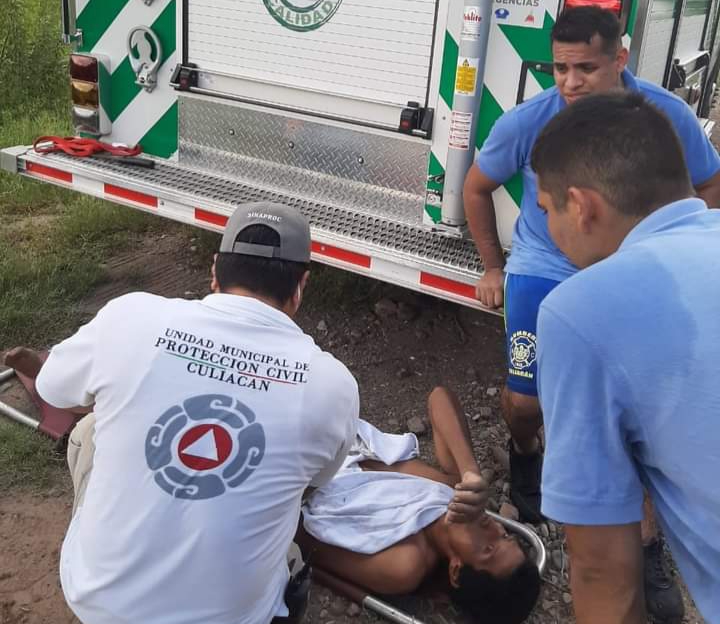 CULIACÁN, Sin.- Elementos de la Policía Municipal y del cuerpo de Bomberos, este medio día fue rescatado de las aguas del río Culiacán, una persona de nombre Ever de 34 años, originario del Guatemala.