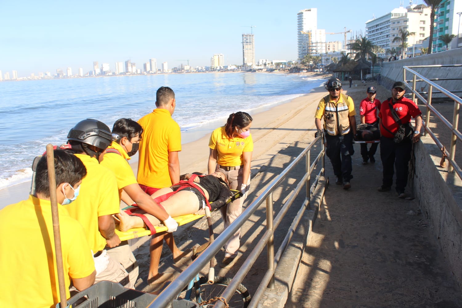 MAZATLÁN, Sin.– Enfocados en temas de prevención de incidentes en el área de playas, además de buscar mejoras en el tiempo de respuesta la dirección de Protección Civil Estatal, la coordinación de PC Municipal y la Secretaría de Seguridad Pública y Tránsito de Mazatlán. a través de la Policía Acuática, realizaron un simulacro de rescate múltiple frente a la Avenida del Mar, en las playas donde se encuentra el Monumento al Pescador.