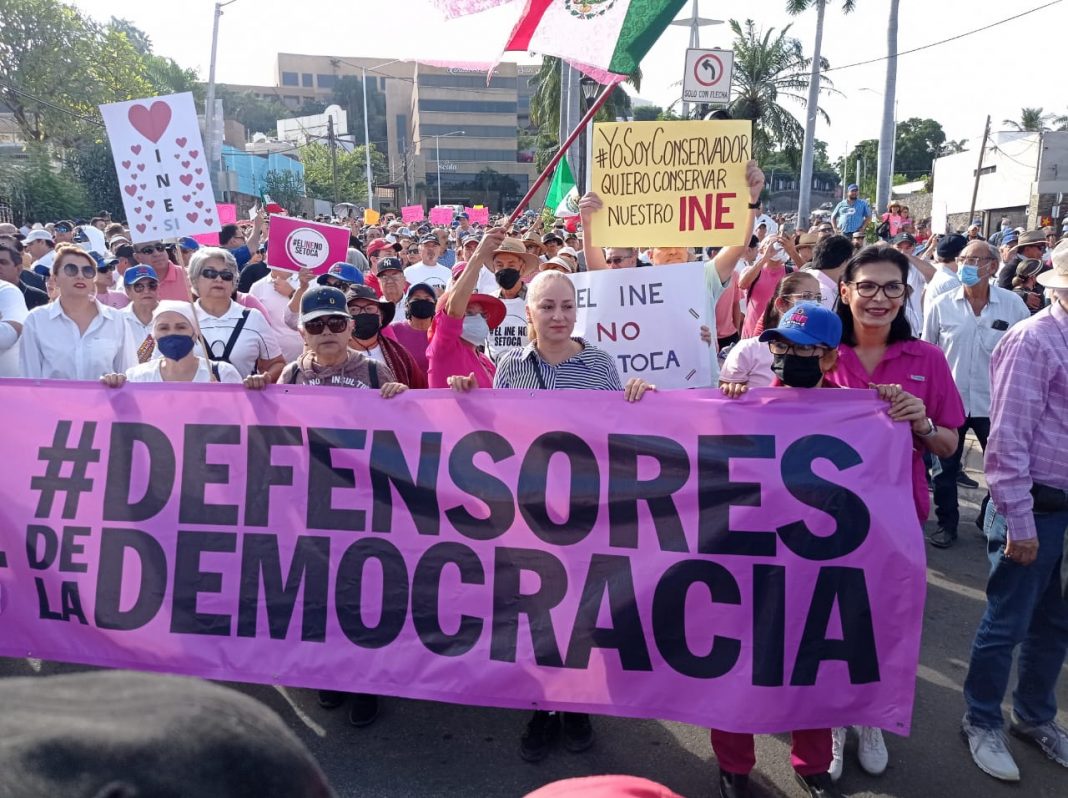 CULIACÁN, Sin.- Con una megamarcha respondieron al menos ciudadadanos de cinco municipios del centro del estado convocada en contra de la reforma electoral que plantea el presidente de la república, Andrés Manuel López Obrador y el grupo mayoritario de Morena.