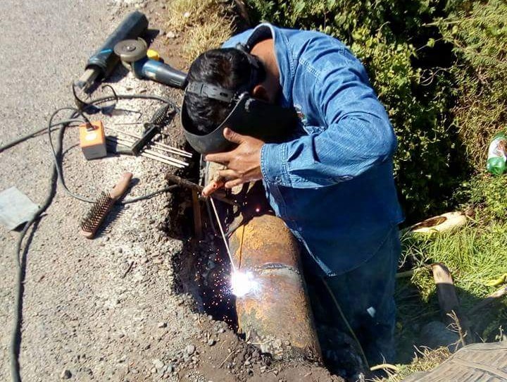 Desde ayer por la tarde se procedió a reparar con soldadura especializada la línea de conducción de agua potable que va de El Vergel a La Primavera